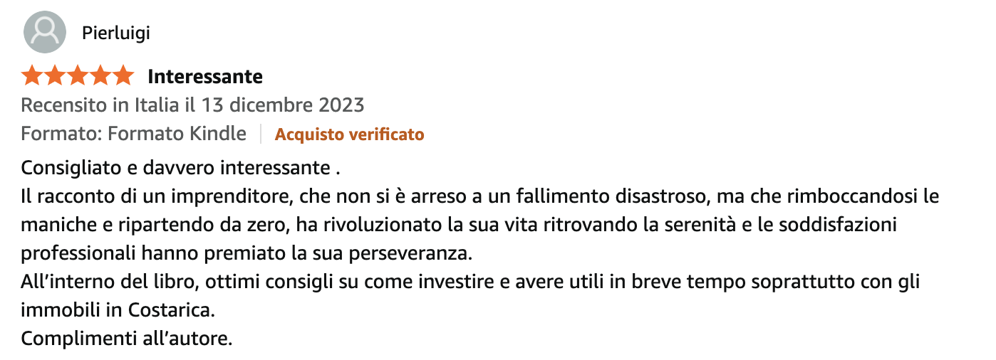 Mentre “Una Lezione da 50 Milioni” ti offre un sistema che ti guida passo dopo passo: dalla consapevolezza, a una strategia strategia su misura, all’esperienza diretta in Costa Rica, fino alla realizzazione pratica del tuo Piano B internazionale.