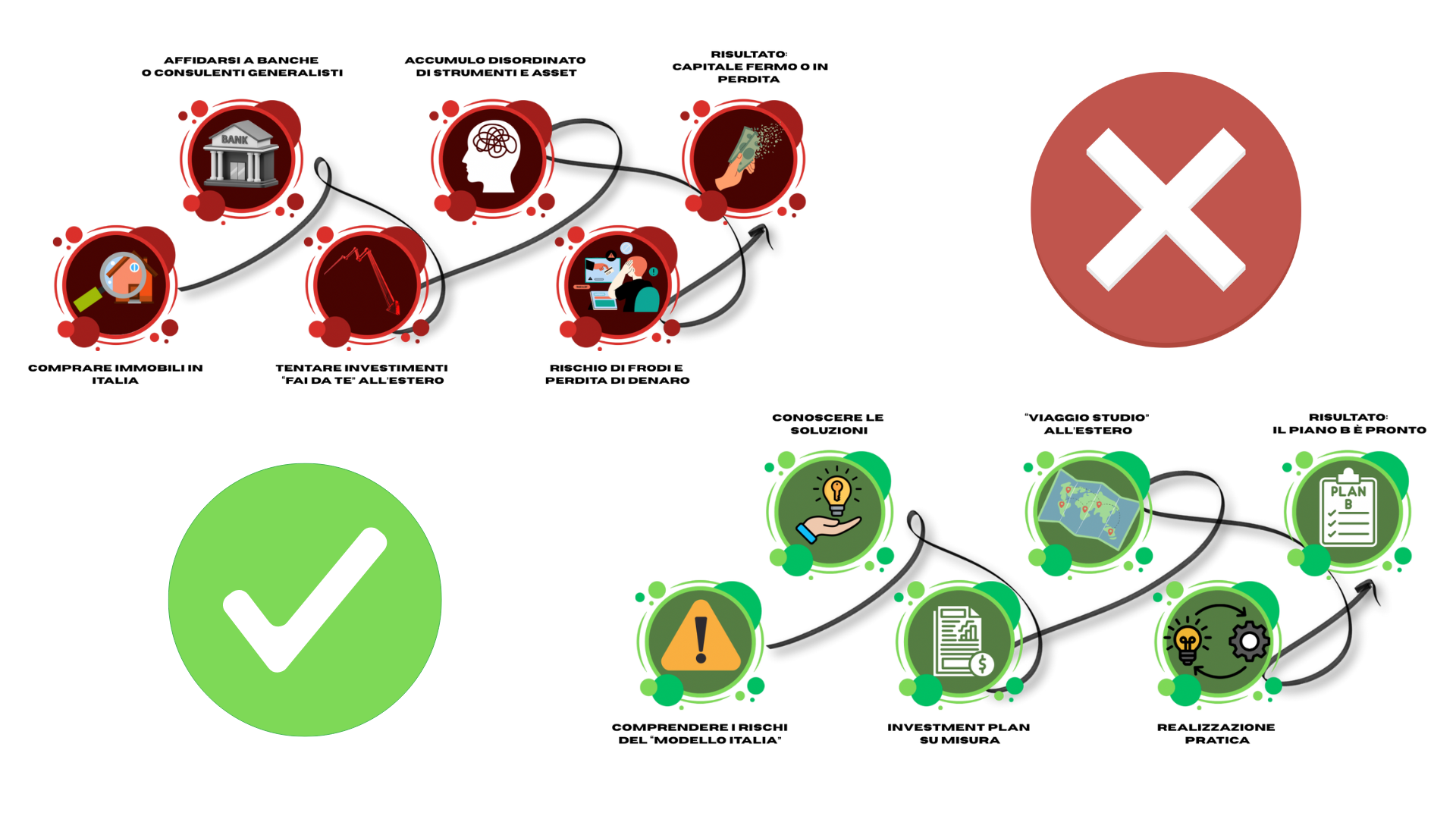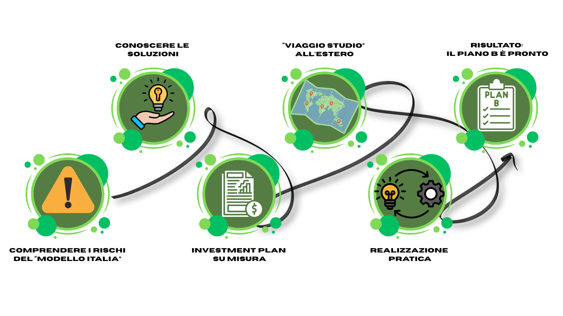 Il Metodo del Piano B Internazionale è differente perché ti porta davvero al risultato in modo lineare e coerente. Ti basta seguire questi 5 step: